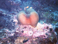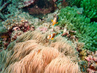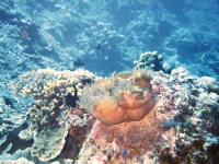 Vanuatu - - - - - Paul's Rock Anemoonvisjes verscholen in tentakels van zee-anemoon |