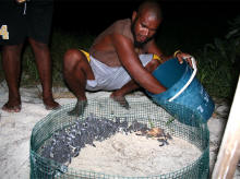 If we see no more movement in the sand Jay put the baby's in a bucket and is counting them (about 100) |