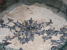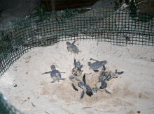 Three months ago their mother has dug a hole, laid her eggs and covered them with sand |