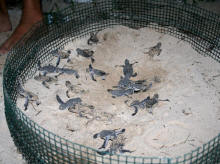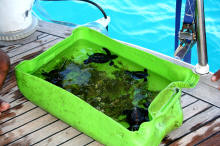 When leaving we receive a bucket with small turtles that have to be set out further away in the lagoon |