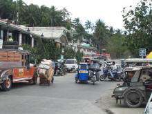 Puerto Galera hoofdstraat met tricycles |