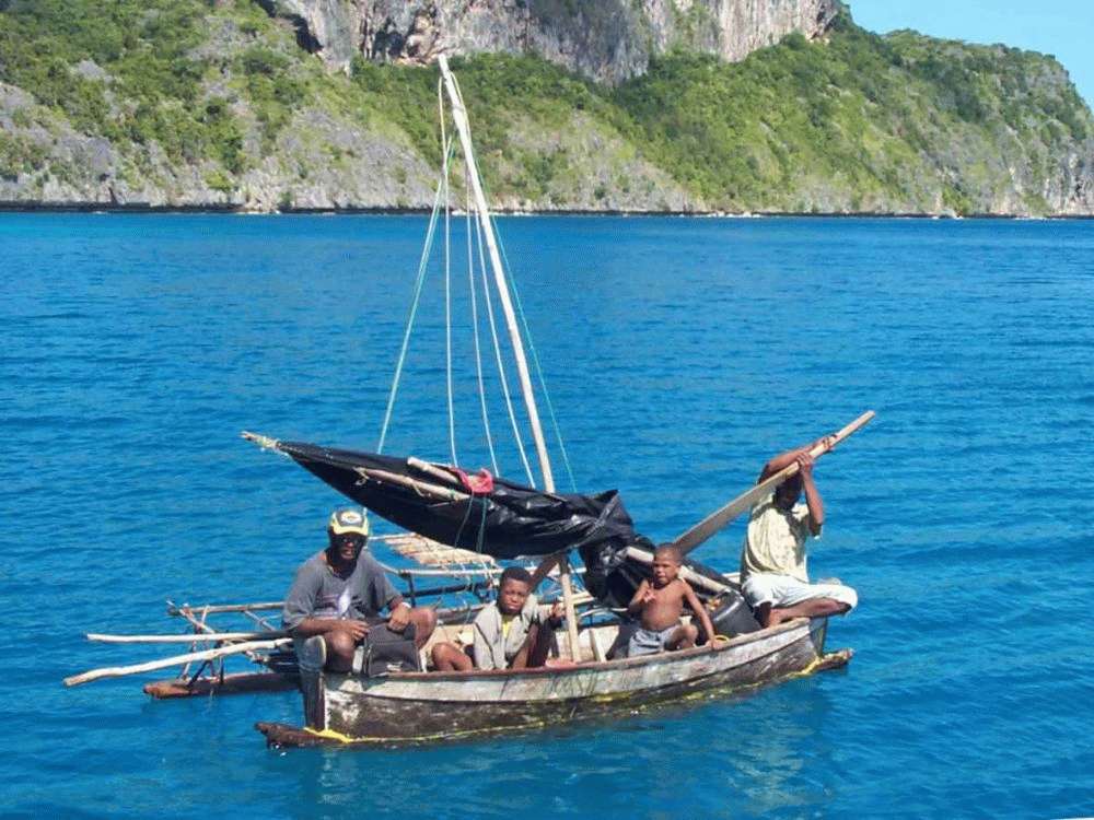 de kant met Maluki, een jongen van een jaar of 18 die houtbewerker is en ons
