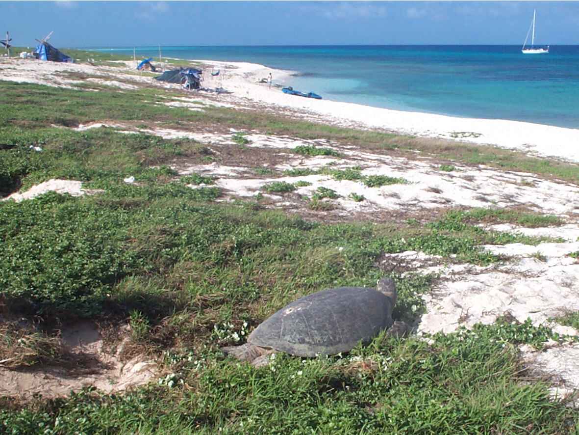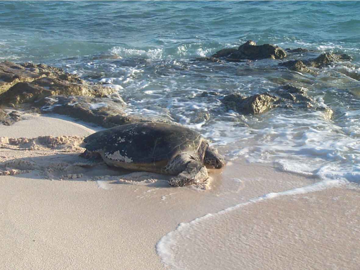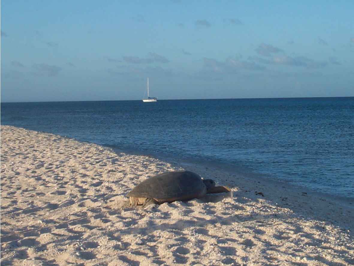 zeeschildpadden aan land komen om eieren te leggen. Overdag is Huon eiland