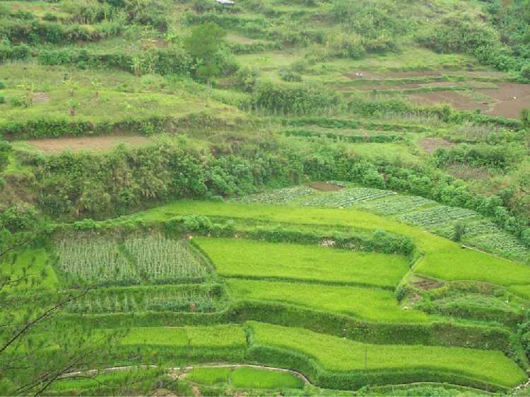 Terrassen voor groenten en rijst |