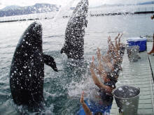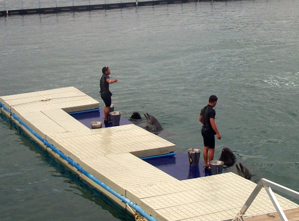 Show van twee orka's en twee dolfijnen |