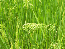 Na het drogen gaat de rijst in zakken |