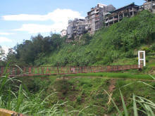 Hangbrug naar Benaue (achterkant van ons hotel) |