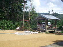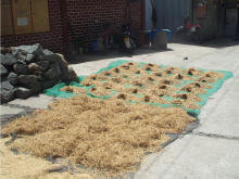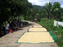 Rijst ligt langs de weg te drogen |