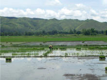 Na de oogst het planten van nieuwe rijst |