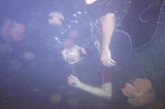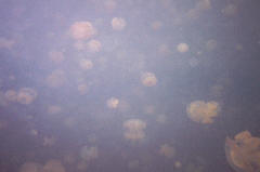 In dit binnenmeer zwemmen honderden jellyfish (kwallen) |