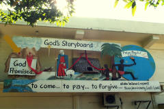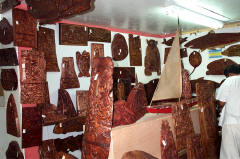In de gevangenis vinden we een mooie collectie 'storyboards', in hout gegraveerde mythen en legendes |