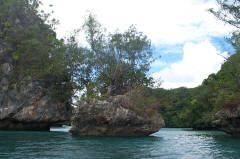 De rock islands kennen diverse lagunes en binnenmeertjes |
