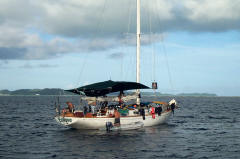 Het duikcentrum van Sam's Tours is ook de verzamelplaats voor jachten die nabij Koror voor anker willen liggen |