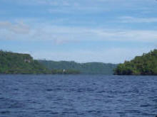 Garove Bay is de krater van een oude vulkaan |