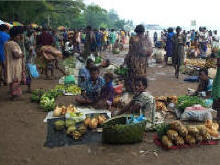 Dagelijks heel vroeg komen mensen van de omliggende eilanden met hun koopwaar naar de markt in Kavieng |