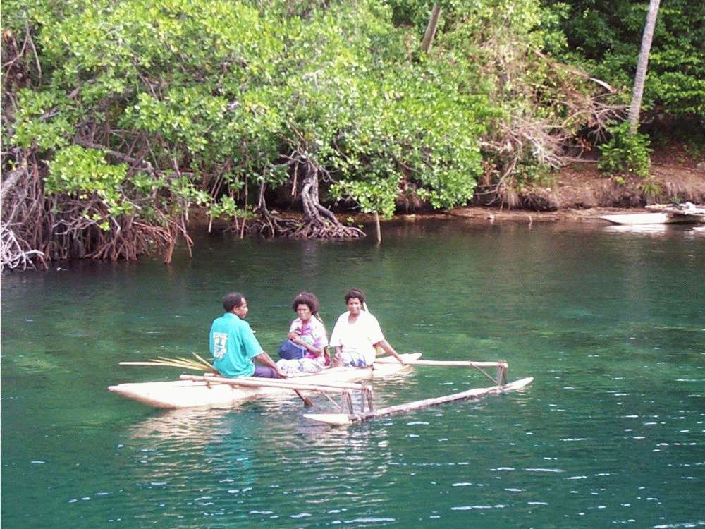 Bwagouia harbour - Sailing canoe in action |