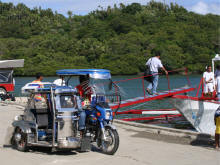 Op de 'muelle', de kade van Puerto Galera, rijden tricycles af en aan |