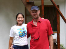 Rowena en Kees voor hun huis in Balatero |