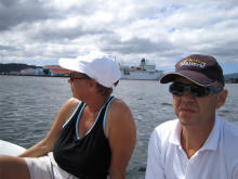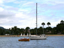 'Belisimo' vaart voor 'Ichiban' langs, het zeiljacht waarmee Kees van Florida naar de Filippijnen voer. |