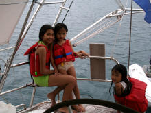 Marianne, Donnell en Rheoxette zijn vanaf 'Ichiban' naar 'Alexandra' komen zwemmen |
