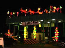 Kerstversiering in Olongapo, langs de weg en bij de toegangspoort tot de Freeport Zone |