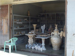 Een van de vele winkeltjes waar marmeren kunstwerken verkocht worden |