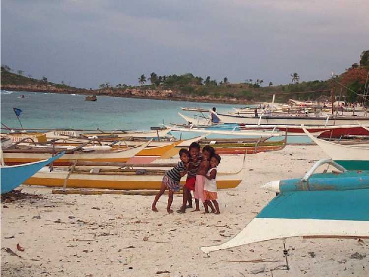 Girls on the beach of Malapascua village |
